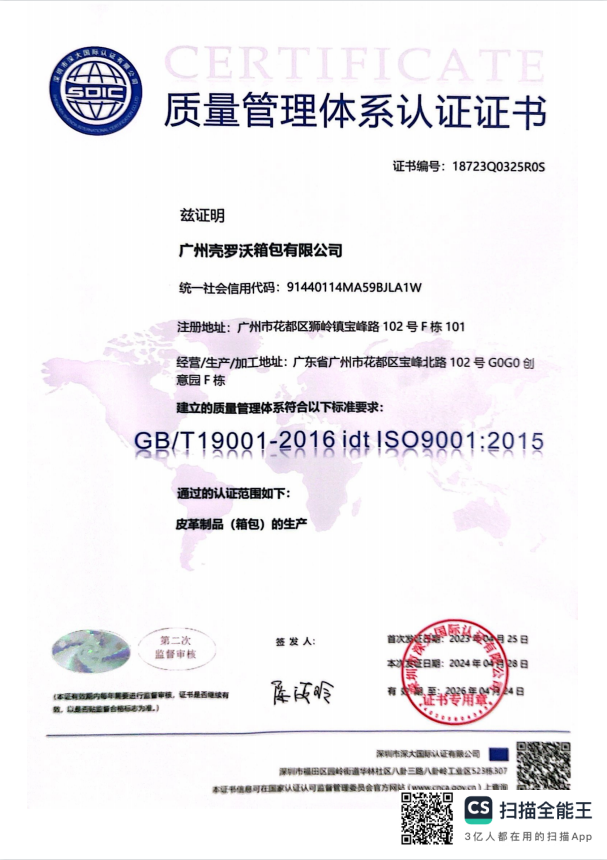 Hemos pasado las certificaciones ISO, BSCI y FAMA y obtenido múltiples patentes. Nuestra bolsa antirrobo de seguridad desarrollada de forma independiente ha obtenido 8 patentes para la función antirrobo de equipaje.